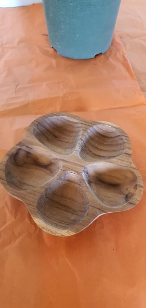 Masszív, tömör teakfából készült, amely nemcsak tartós, hanem gyönyörű, Teakfa kínáló – 5 rekeszes, 17 cm átmérővel