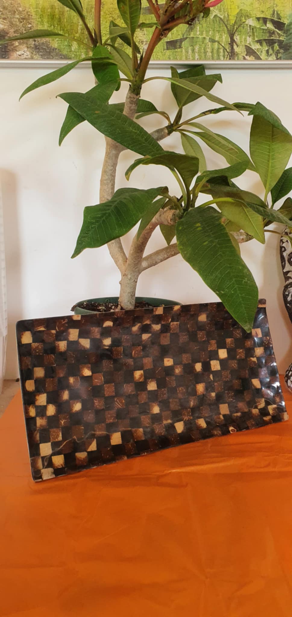 Ez az egyedi, kézzel készült hosszúkás fa tál közvetlenül Baliról érkezett, és a sziget tradicionális kézművességének igazi mestermunkája.
