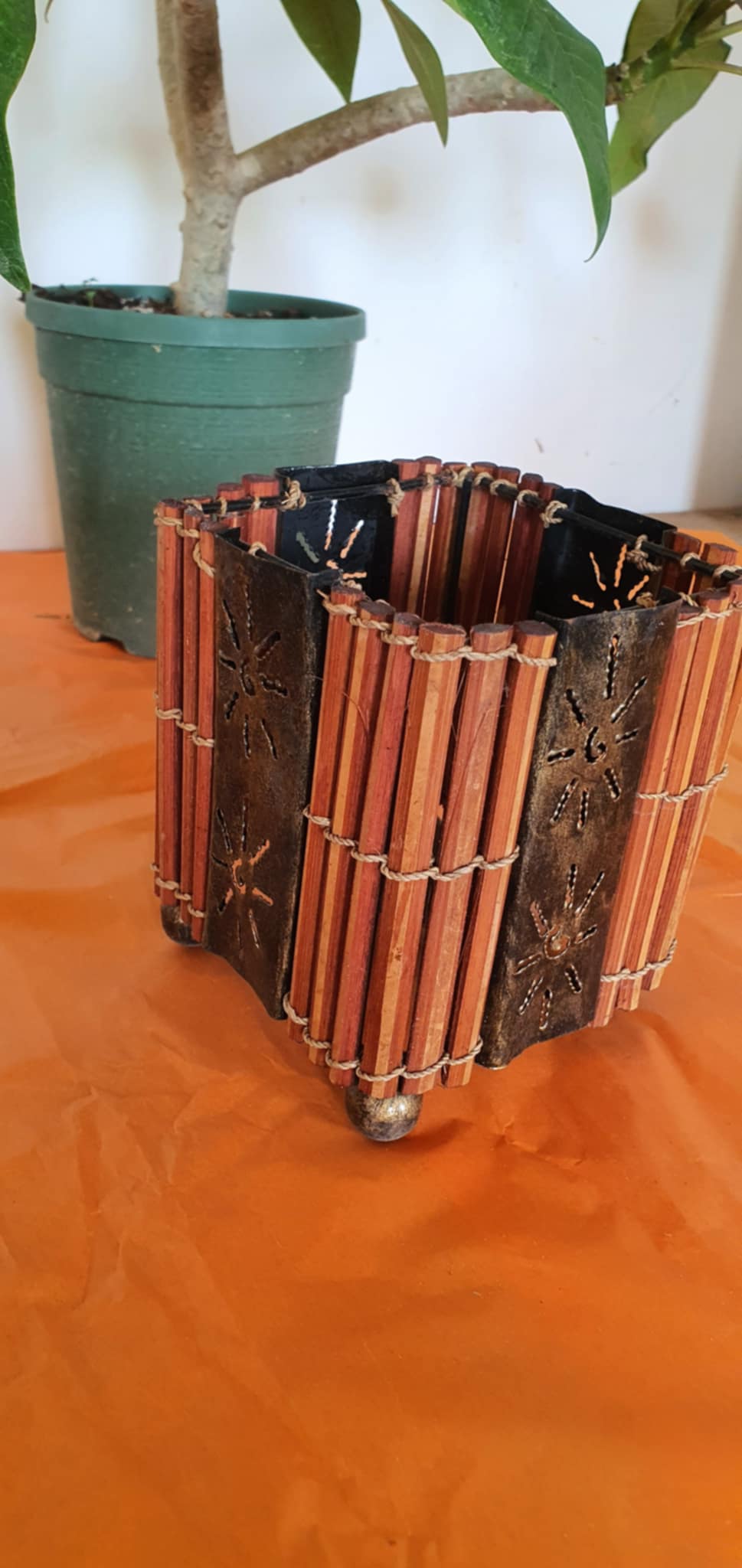 Ez a különleges, kézműves mécsestartó a fa és fém harmonikus találkozásából született – egyenesen Baliról, ahol a természet ihlette formák és a kézi munka mindennapi művészet.