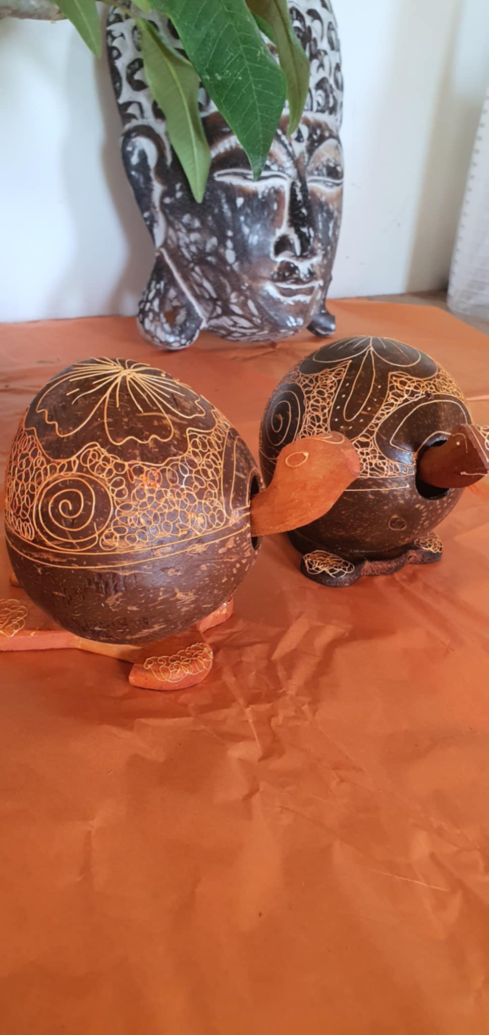 Kézműves teknős kókuszból – mozgó fejjel, balinéz motívumokkal